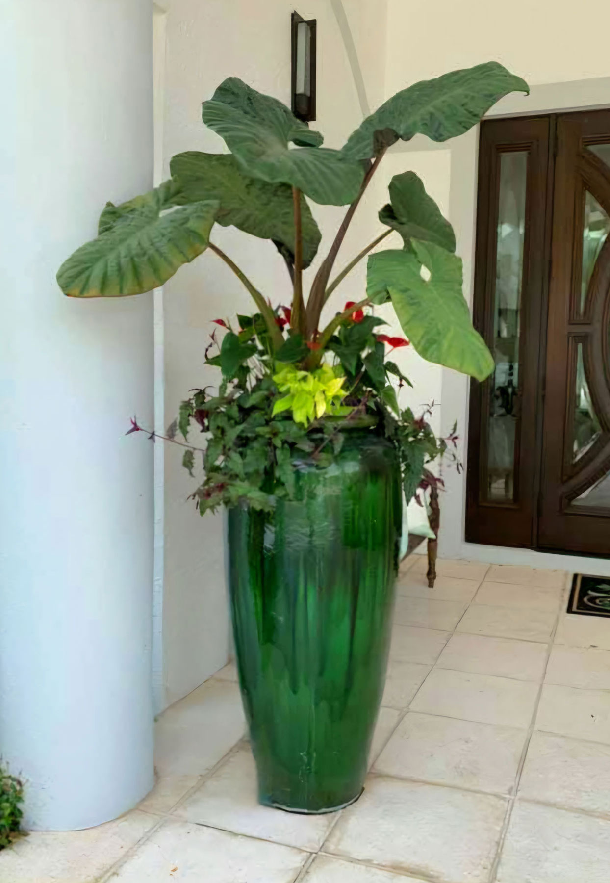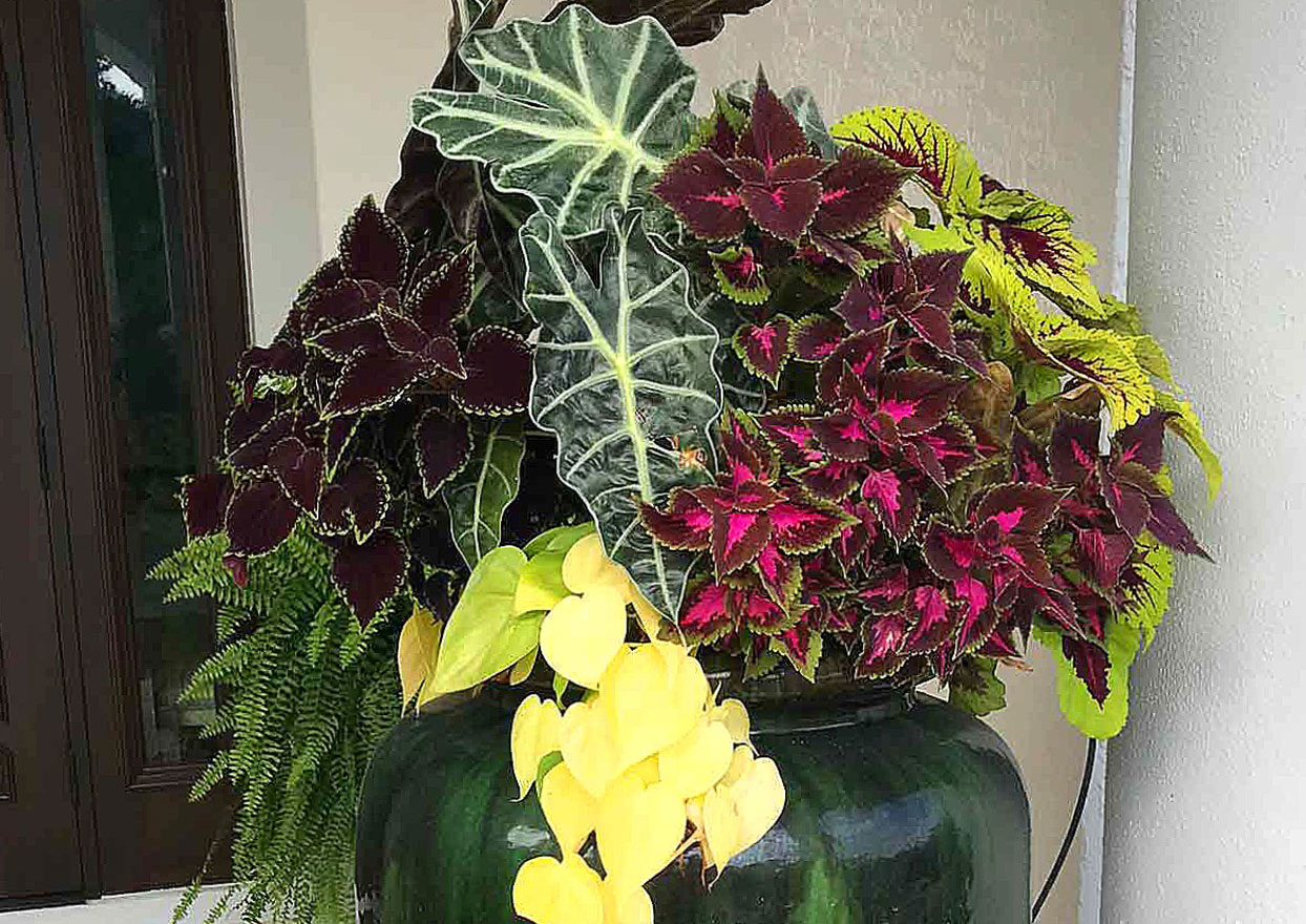 Amazonica alocasia, lime pothos and coleus for summer color that beats the heat | Love's Landscape Landscape Installation & Maintenance Company
