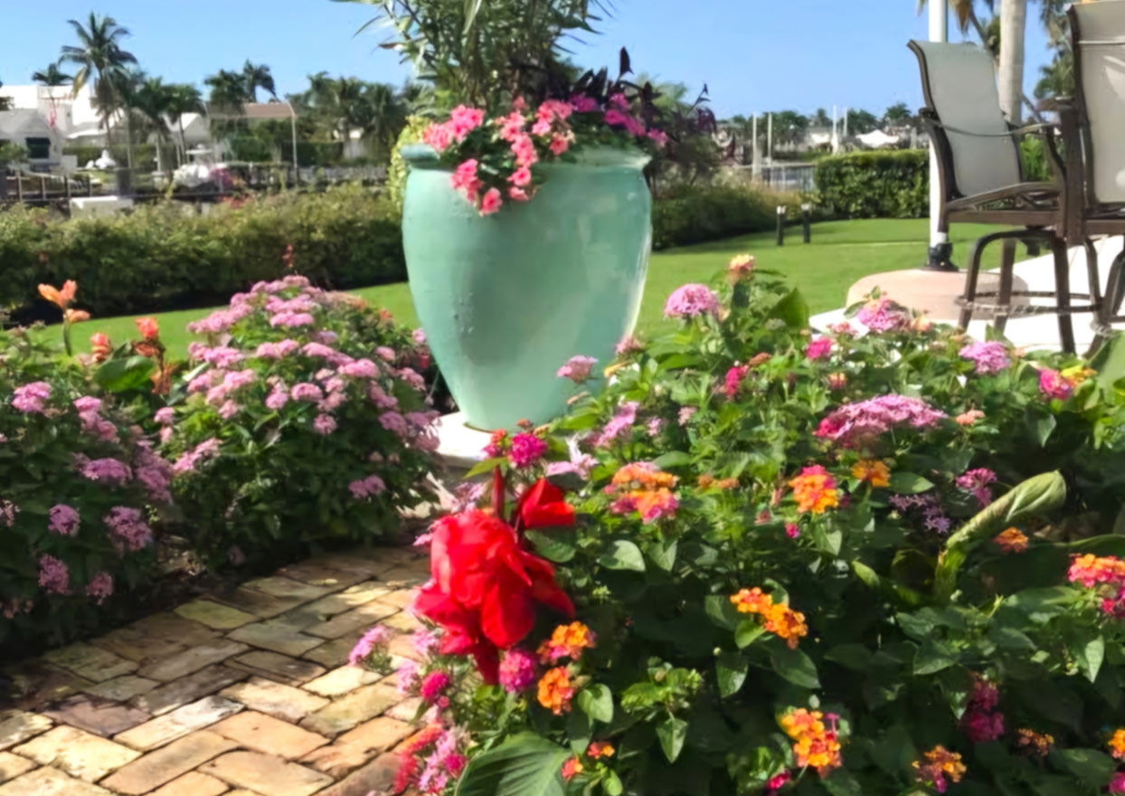 Collection of pentas, lantana, trailing vinca, and canna lilies | Love's Landscape Landscape Installation & Maintenance Company