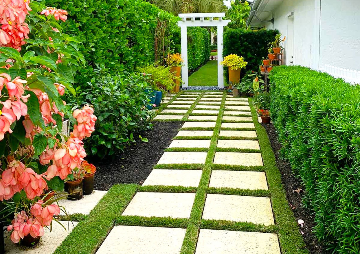 Pergola walk through with 18 pavers and zoysia inlay | Love's Landscape Landscape Installation & Maintenance Company